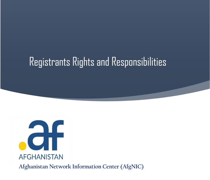 "د ډومین نوم ثبتولو پالیسي په ټولو ډومین نومونو باندې چې د AFGNIC لخوا اداره کیږي پلي کیږي ، او راجستر کوونکی اړ دي چې د .af ډومین ثبتولو دمخه خپل مشتریان خبر کړي. هر هغه راجستر کونکی چې غواړي د .af ډومین نوم راجستر کړي باید د ډومین نوم پالیسي ولولي او ورسره موافقه وکړي.
